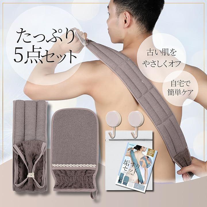 「セット内容」垢すりタオル、垢すりミトン、収納用フック2個、ランドリーネット(洗濯ネット)、使用説明書