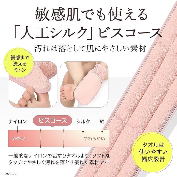 「垢すりタオル・ミトン」 敏感肌でも使える「人工シルク」ビスコースを使用。