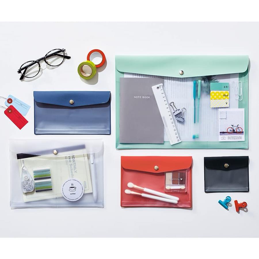 小物の整理にぴったりな前面内ポケット付き容量に応じて広がる底マチ付き。