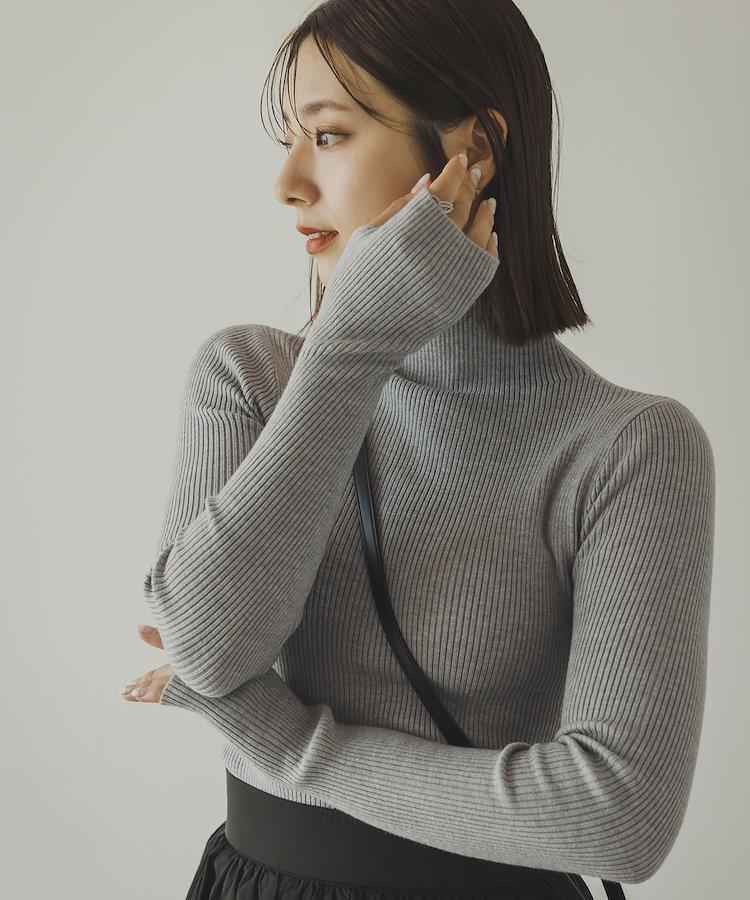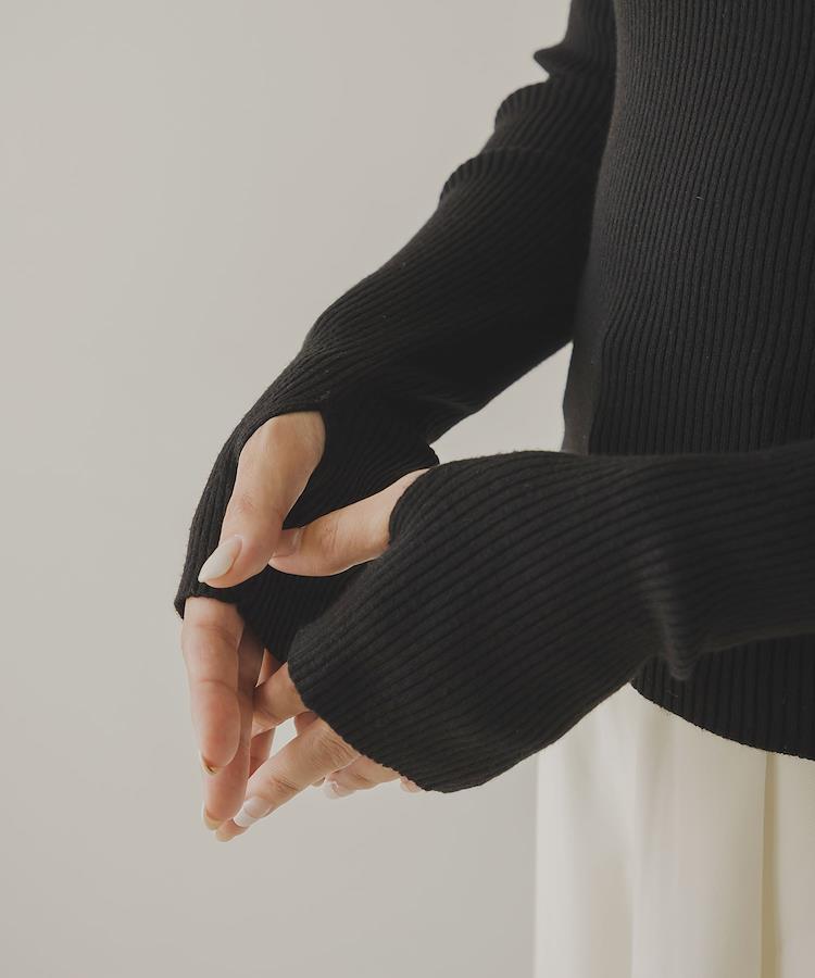 ベーシックデザインにアームウォーマーの要素を取り入れた今年らしいリブニットトップス。