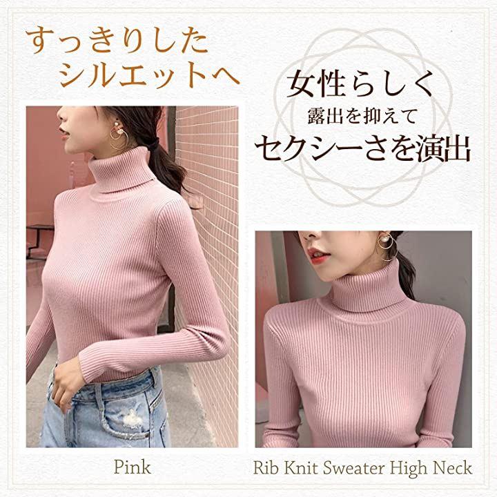 さらにニット生地なので秋から冬、春先まで着回しを楽しめるので、1着は持っておきたいトップスの一つです。・「シンプルだからこそトレンドを選ばず、コーデに取り入れやすい。」ジャケットやキャミソールワンピなどのアウターと重ね着をしたり、顔周りに華やかな小物と合わせたりすれば、好印象間違いなし。しかし、1枚でもお洒落なリブニットセーターなので、ちょっとしたおでかけや部屋着からデート、さらにはオフィスカジュアルとして仕事まで着回しできる優れものです。・「露出が控えめで上品に魅せてくれます。」上半身が華奢な方は、特にボディラインを美しく魅せてくれるのでおすすめです。