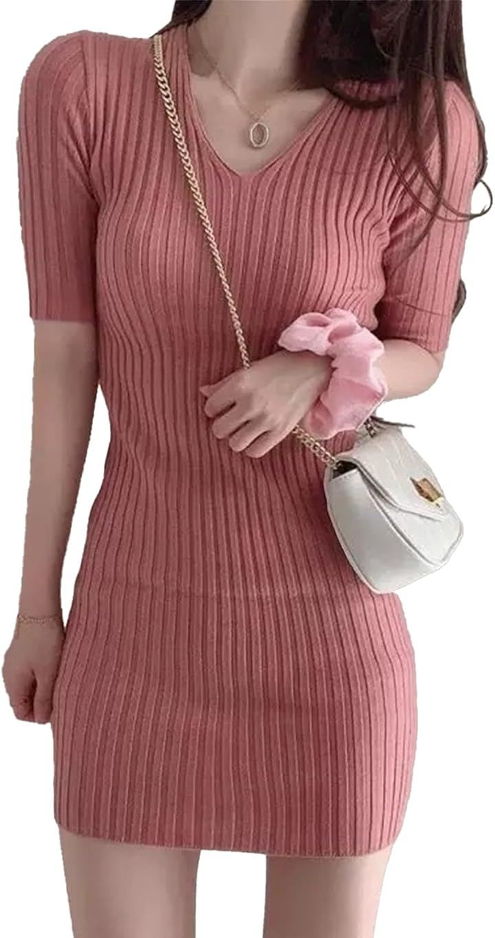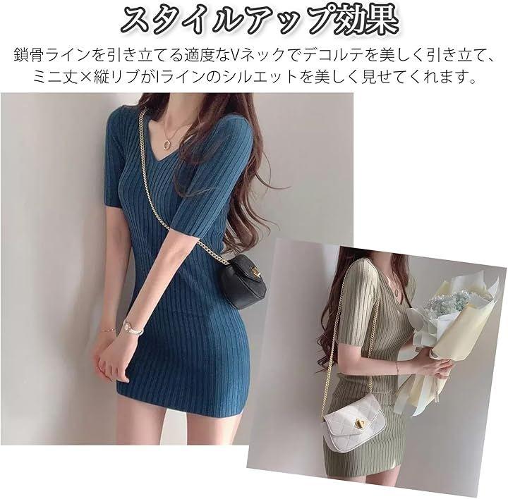 鎖骨ラインを引き立てる適度なVネックでデコルテを美しく引き立て、ミニ丈x縦リブがIラインのシルエットを美しく強調するワンピースです。