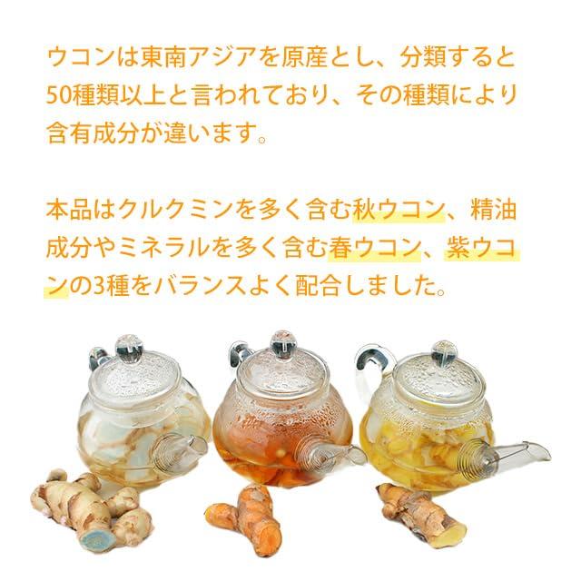 原材料・成分秋ウコン末(インド産・国産)、春ウコン末、紫ウコン末/セルロース、微粒二酸化ケイ素