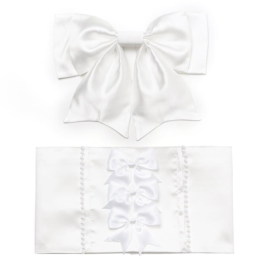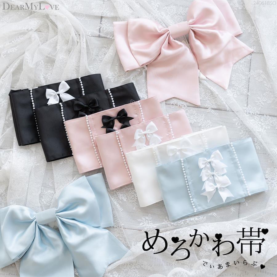 【デザイン】フロントのリボン3つがかわいすぎるデザイン帯。パールテープも使用し、上品で存在感のあるアイテムです。背中の作りリボンも大きめのダブルリボンで、プレゼントのリボンみたいに可愛いです。