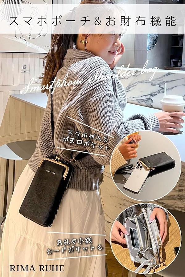 ショルダーストラップ付きでななめ掛け可能なスマホポーチです。長さ調整可能なタイプです。