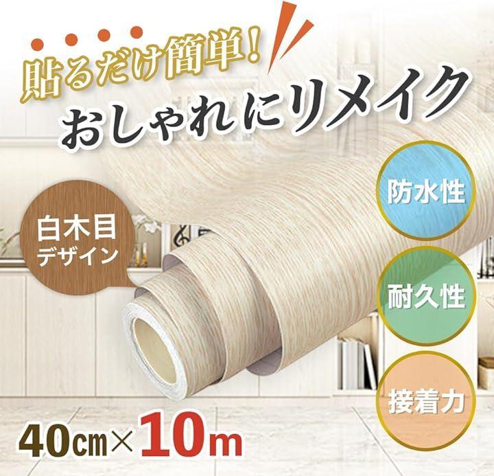白木目リメイクシートは、幅40cmx長さ10mの大容量タイプで、壁や家具を一度にリメイク可能です。