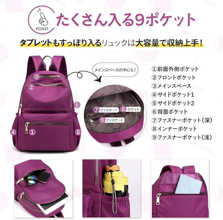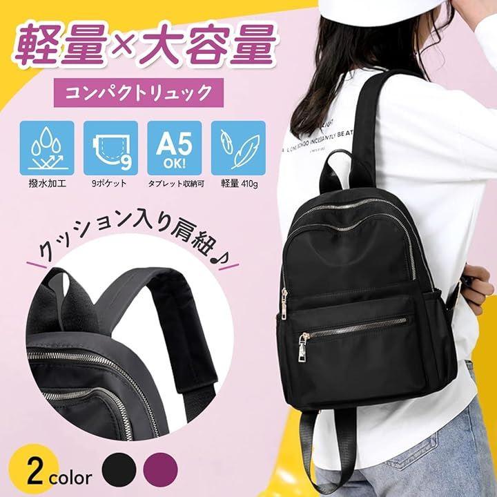 *サイズ: 高さ(約33cm)x横幅(約26cm)x奥行(約13cm) *重量: 約410g *素材: ウォータープルーフナイロン製 *カラー: ブラック/パープル *ストラップ: 長さ調整可能
