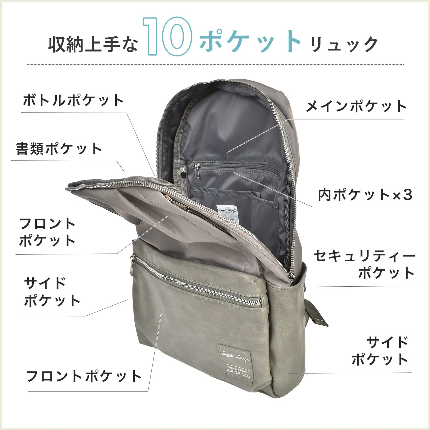 リュック Legato Largo レガートラルゴ レディース 通勤 A4 きれいめ 大人 女性 軽い 撥水 防水 大容量 ポケット 多い たくさん リュックサック デイパック バックパック オールデイ 通学 仕事 旅行 黒 ブラック ベージュ グレー ネイビー おしゃれ シンプル 合皮 無地 軽量 LT-X0452 マザーズリュック ママリュック かばん 鞄 はっ水 学生 カジュアル 大人かわいい ブランド コンパクト 背面ポケット 背面ファスナー 直結 普段使い フェイクレザー 10代 20代 30代 40代 50代 中学校 高校 大学 中学生 高校生 大学生 学校 娘 孫 女子 女の子 ガールズ girl 母 おかあさん ママ バースデー 誕生日 プレゼント ギフト 母の日 クリスマス クリスマスプレゼント お洒落 かわいい 可愛い ショルダー留め ビスロンファスナー 背面直結ファスナー 防犯 上品 バッグパック デイバッグ マザーズバッグ マザーズバック デカリュック バッグ バック bag PC パソコン タブレット 入る