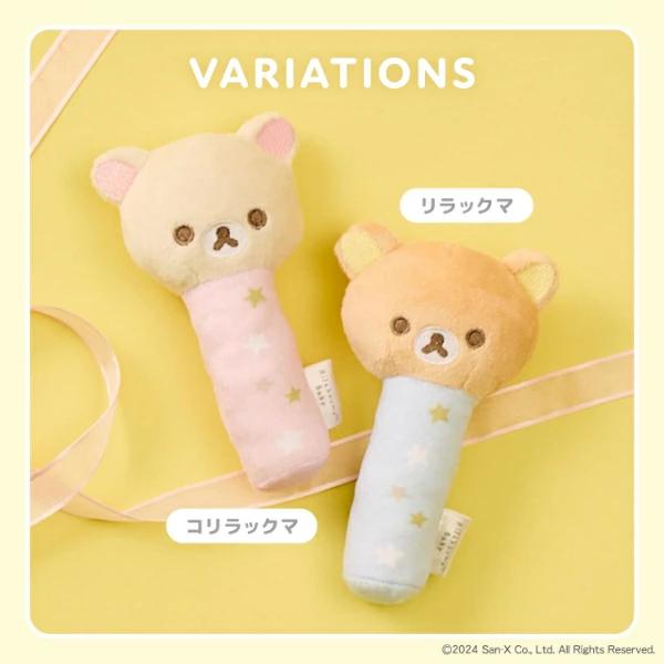 リラックマの小さな手で握りやすい、やさしい手ざわりのにぎにぎスティックです。にぎるとキュッキュ!と音がします! 優しいパステルカラーがかわいく、ギフトにもぴったり♪【お手入れ方法】乾いた布や水で濡らし固く絞った布で拭き、完全に乾燥させてください。アルコール成分を含む除菌シート等で製品を拭かないでください。変色、変形するなど製品が劣化する可能性があります。