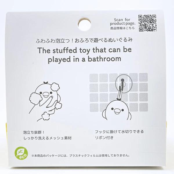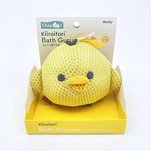 メッシュ素材で泡立ち抜群!ボディスポンジとしてもご使用できるお風呂で遊べるリラックマ(キイロイトリ)のぬいぐるみです。錆びないプラ製の鈴が入っているので、身体を洗う度に軽やかな鈴音が鳴りお子様も喜ぶこと間違いなし!ぜひキイロイトリと一緒にお風呂時間をもっと楽しくしましょう♪