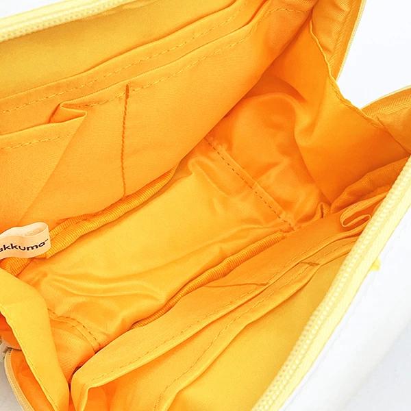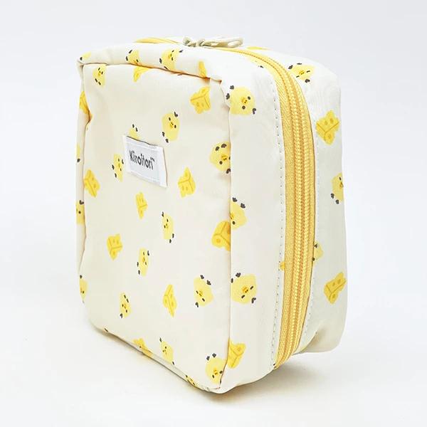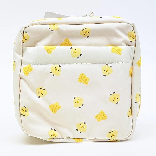 キイロイトリのチラシ柄がかわいい自立ポーチ。マチ付きで自立するので、パッと見やすく使い勝手も収納力もバツグンです♪