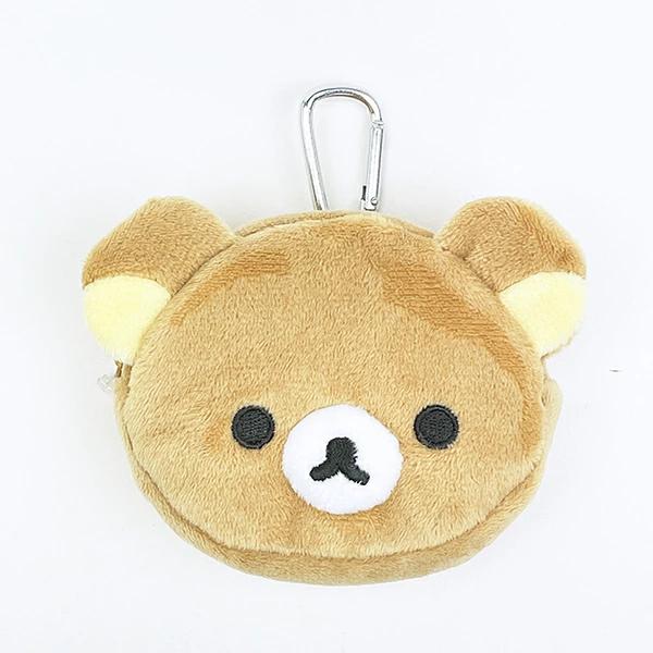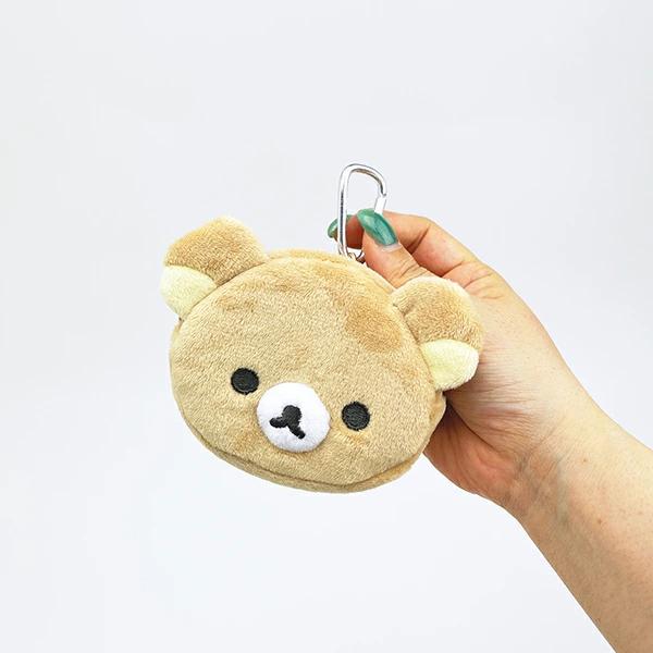 リラックマのフェイスミニポーチ☆イヤホンやリップなどの小さい物を収納して持ち運べるコンパクトなポーチです♪カバンなどに取り付けるのに便利なカラビナ付き!!