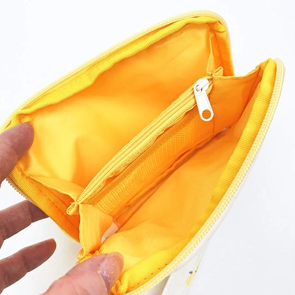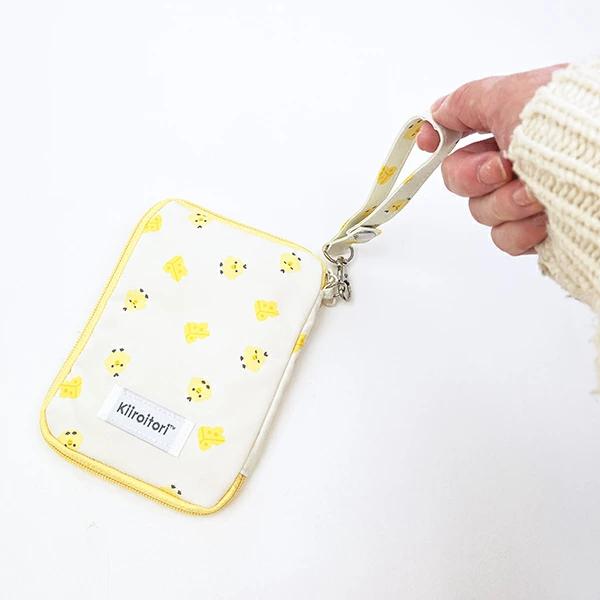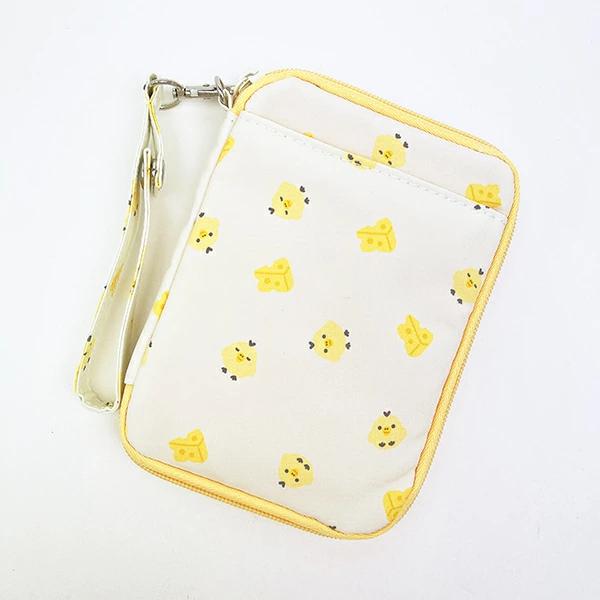 キイロイトリのチラシ柄がかわいいパスポートポーチです。フリーポケット2つ、ファスナーポケット、メッシュポケットと、ポケットいっぱいで使いやすい♪パスポート以外のものを入れても◎