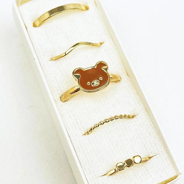 リラックマの「リラノワ」ジュエリーリングセットです。シンプルで使いやすいデザイン☆セットなのでお好きな組み合わせで付けられて◎専用のケース付きなのでプレゼントにもおすすめです♪【サイズ:4号~13号】