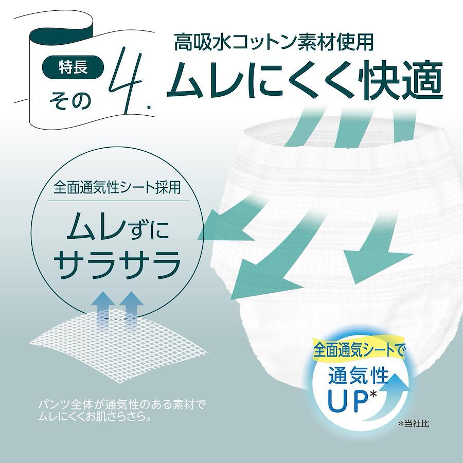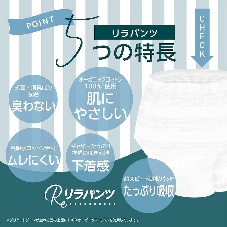 超うす型でアウターに響かず、持ち運びもコンパクトで下着感覚で履けます。 市販の商品に比べて薄型に設計されているため、快適な着用感があります。また、吸水量はそのまま保持されています。着用時の快適さと、安心の漏れ防止機能が、この商品の主要な魅力です。 肌が触れる表面シートに100%オーガニックコットンを使用し、敏感肌の方にも安心。※天然素材のため、表面シ-トにコットンの種子殻等が黒い点で残る場合があります (S/M/L/XL)の豊富な4サイズ展開で、夜間就寝中の軽い尿失禁をしっかりガード。 1回の排尿量150mlとし(※当社調べ)、約4回分(※)の吸水設計。 Mサイズ(ウエスト:60~85cm)