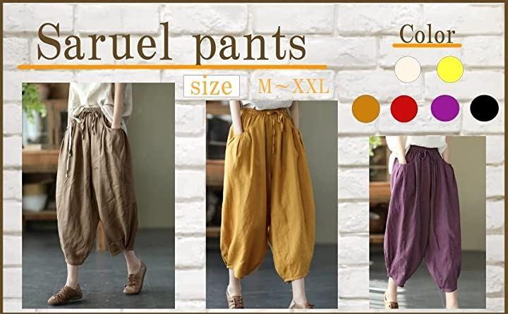 ・ふわっと丸みのあるシルエットが可愛らしいサルエルパンツ。