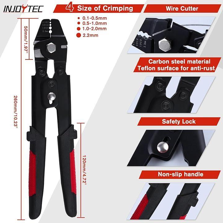「180個ワイヤーロープ圧着工具キット」「仕様」材質:炭素鋼「注意事項」 1.使用前に必ず点検してください。