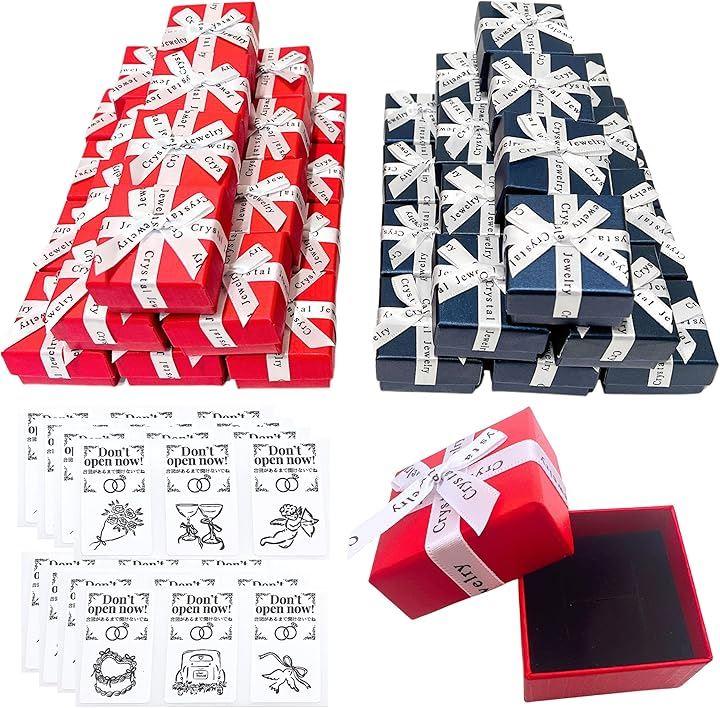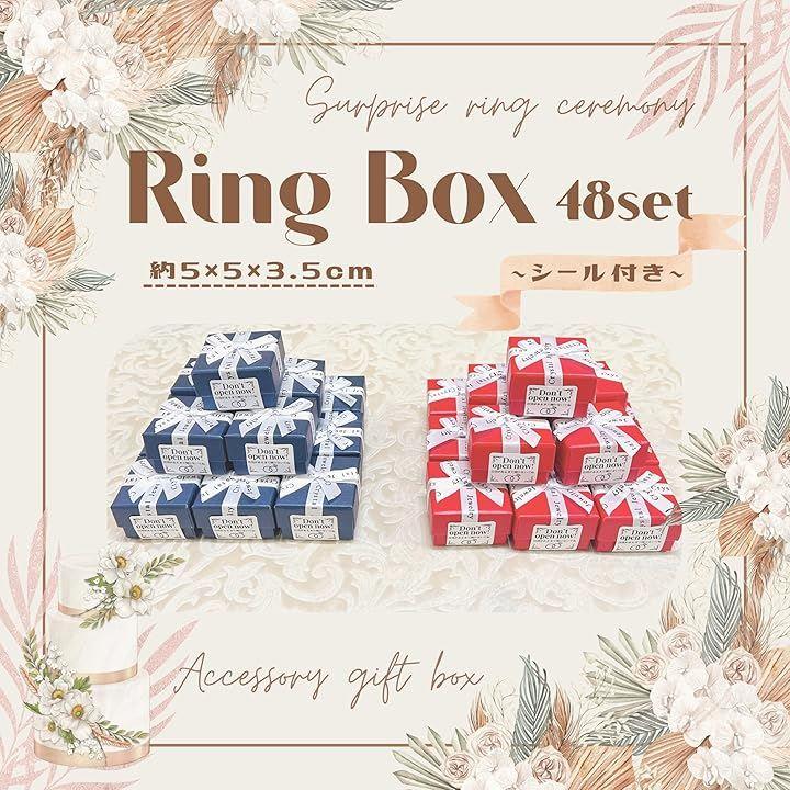 「商品仕様」BOXサイズ:約5cm角(高さ約3.5cm),BOX素材:紙,セット数:赤BOXx24個、紺BOXx24個(計48個)、シール48枚