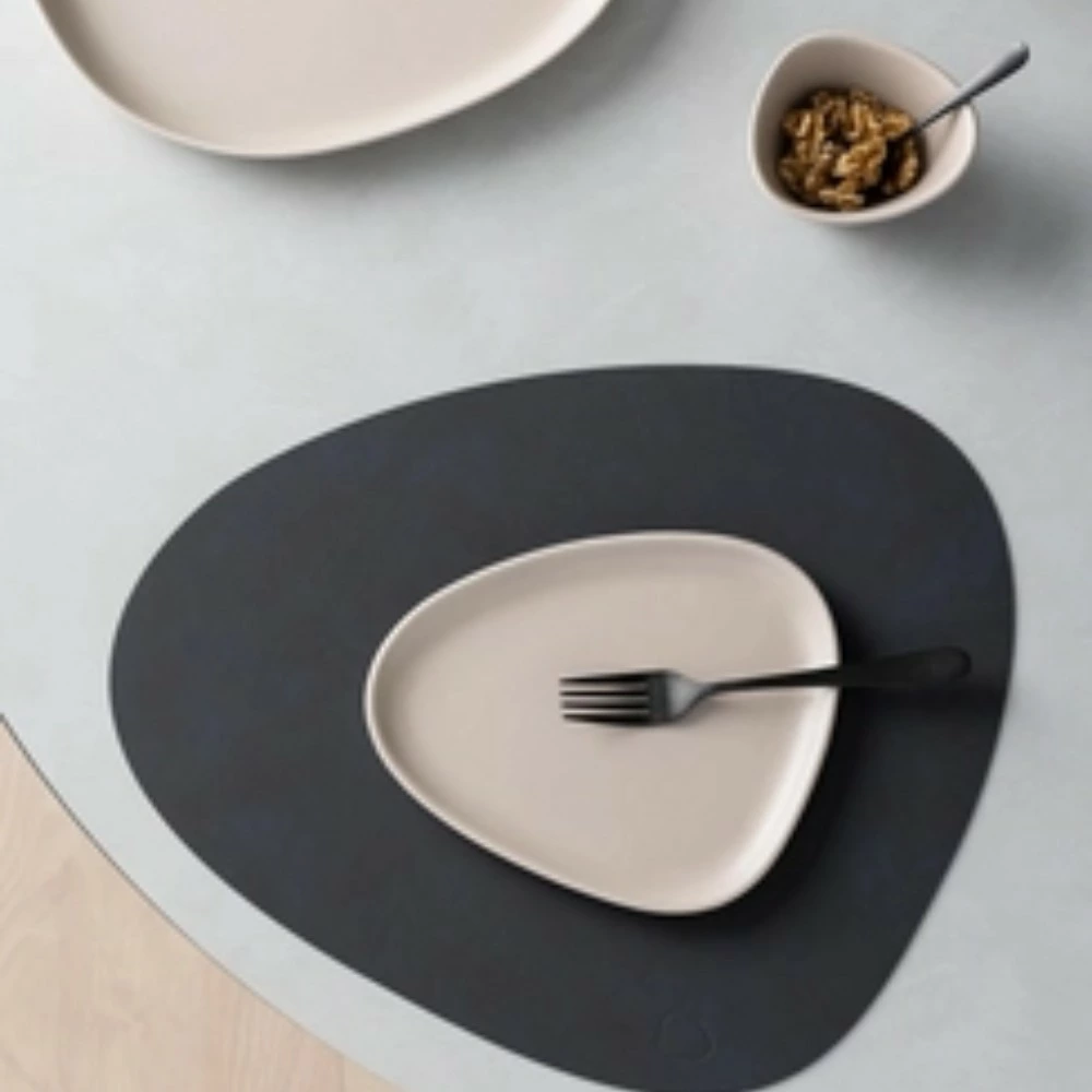 プレイスマット、コースター、フラワーベースカバーはリサイクルレザーを使う事により革の高級感と暮らしの中での使いやすさを両立。