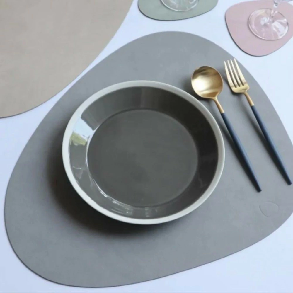 プレイスマット、コースター、フラワーベースカバーはリサイクルレザーを使う事により革の高級感と暮らしの中での使いやすさを両立。
