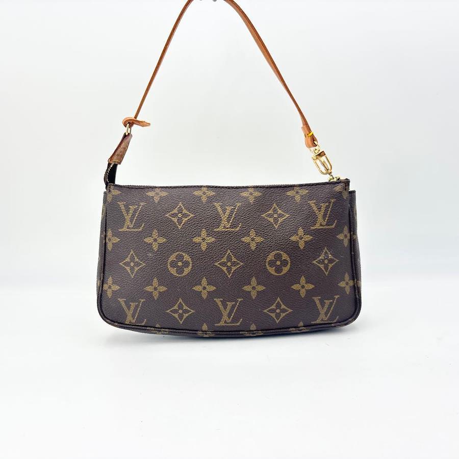 LOUIS VUITTON ルイヴィトン モノグラム ポシェット アクセソワール アクセサリーポーチ ハンドバッグ ブラウン PVC レザー レディース ユニセックス