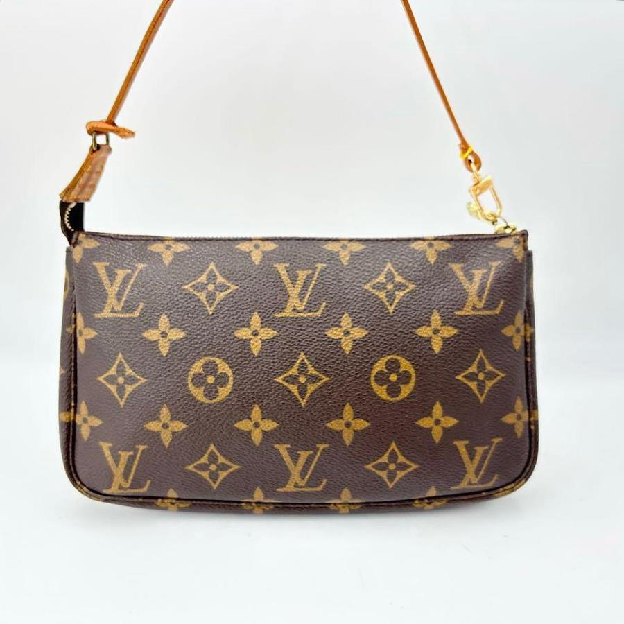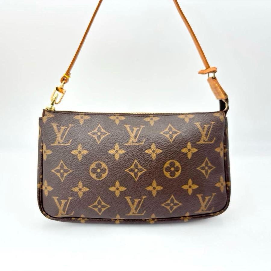 LOUIS VUITTON ルイヴィトン モノグラム ポシェット アクセソワール アクセサリーポーチ ハンドバッグ ブラウン PVC レザー レディース ユニセックス