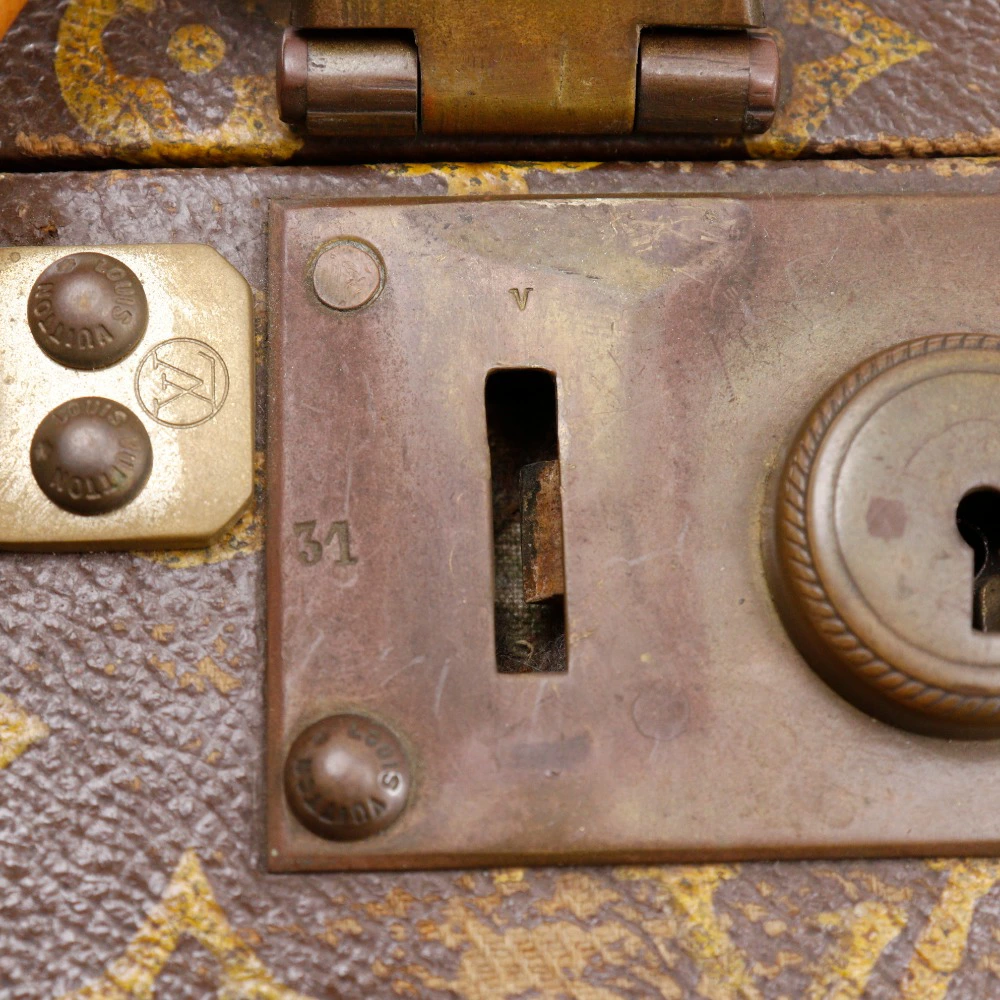 Pre-owned Louis Vuitton antique trunk in Monogram canvas, brown, carrying capacity, A4 size, snap closure, unisex, B-grade.