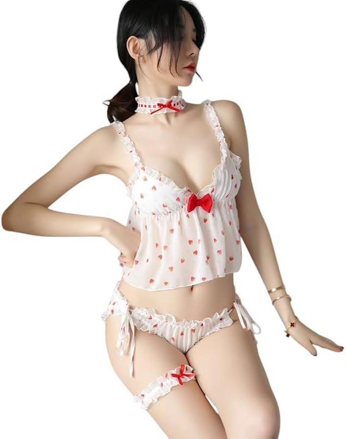 「激可愛いデザイン」女の子気分を叶える、可愛い&セクシーな苺柄ランジェリーセット。