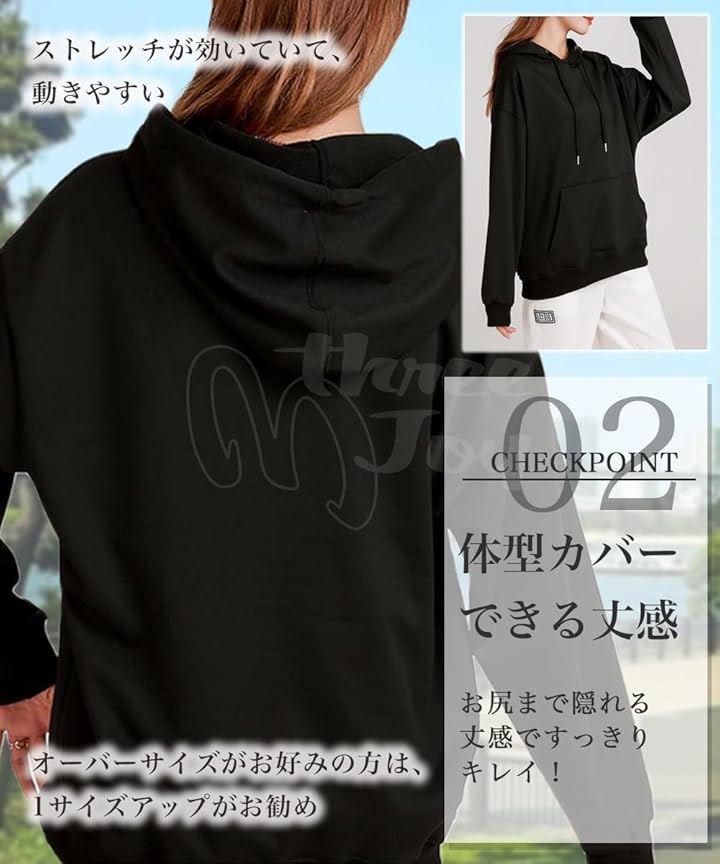お尻が半分隠れるくらいの丈感で、体型カバーもバッチリ。よりゆったり着たい方は、ワンサイズアップがおすすめです。