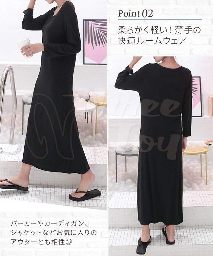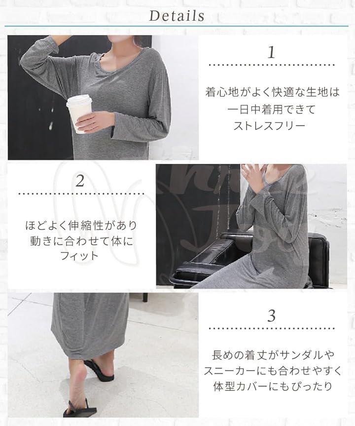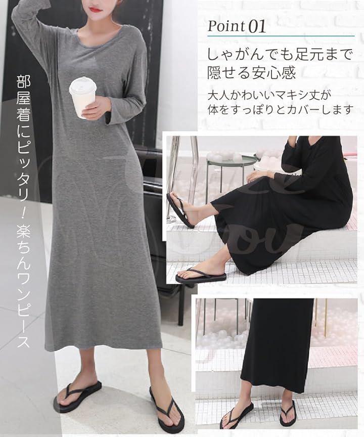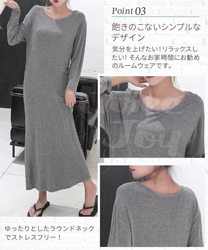 「デザイン」薄手の大人かわいいルームワンピ。足元まで隠れるゆったりとしたサイズ感。