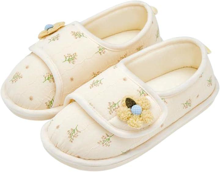 Women's slip-on indoor shoes with heels, surface tape, and non-slip backing. Features a floral ribbon pattern. Perfect for the living room, kitchen, or office. Perfect for all seasons.