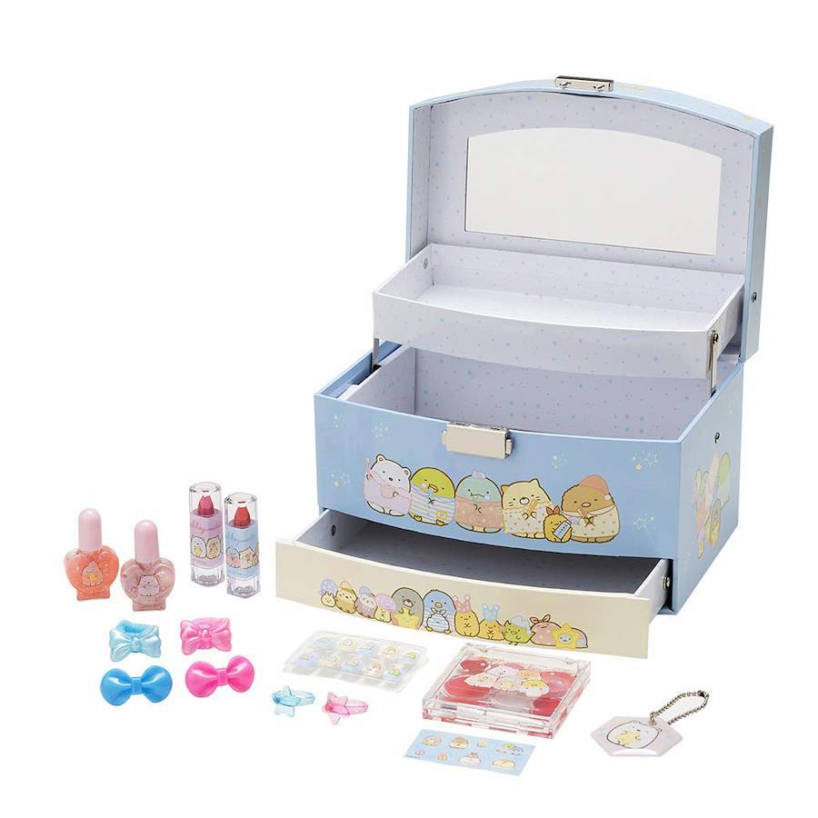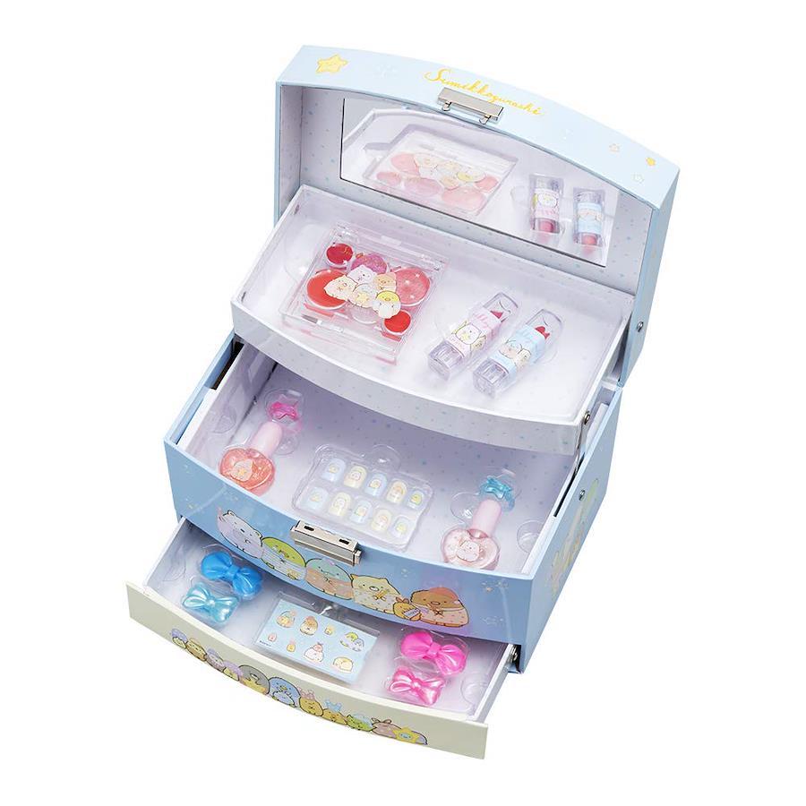 すみっコぐらしのメイクアップドロアーが新登場!3段ハンドメイドボックスです!おしゃれが大好きなキッズにオススメ。ボリュームたっぷりのメイクが入っているので、気分に合わせてメイクを楽しめる。ボックスはメイクボックスとしてアフターユースできます!