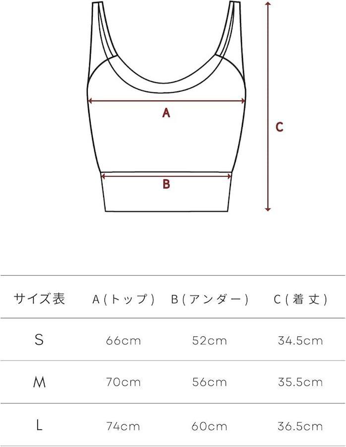 「サイズ」*S*トップ66cm / アンダー52cm / 着丈34.5cm *M*トップ70cm / アンダー56cm / 着丈35.5cm *L*トップ74cm / アンダー60cm / 着丈36.5cm