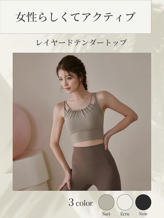 胸元や脇、ウエストの露出を控えめに設計し、逆転ポーズでも安心して着用可能。