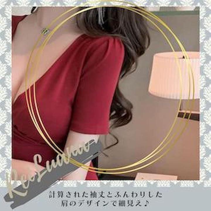 「大人の上品なセクシーさを演出」 セクシーな胸開きデザインでもお袖があるので全体がエレガントな雰囲気に仕上がっています。