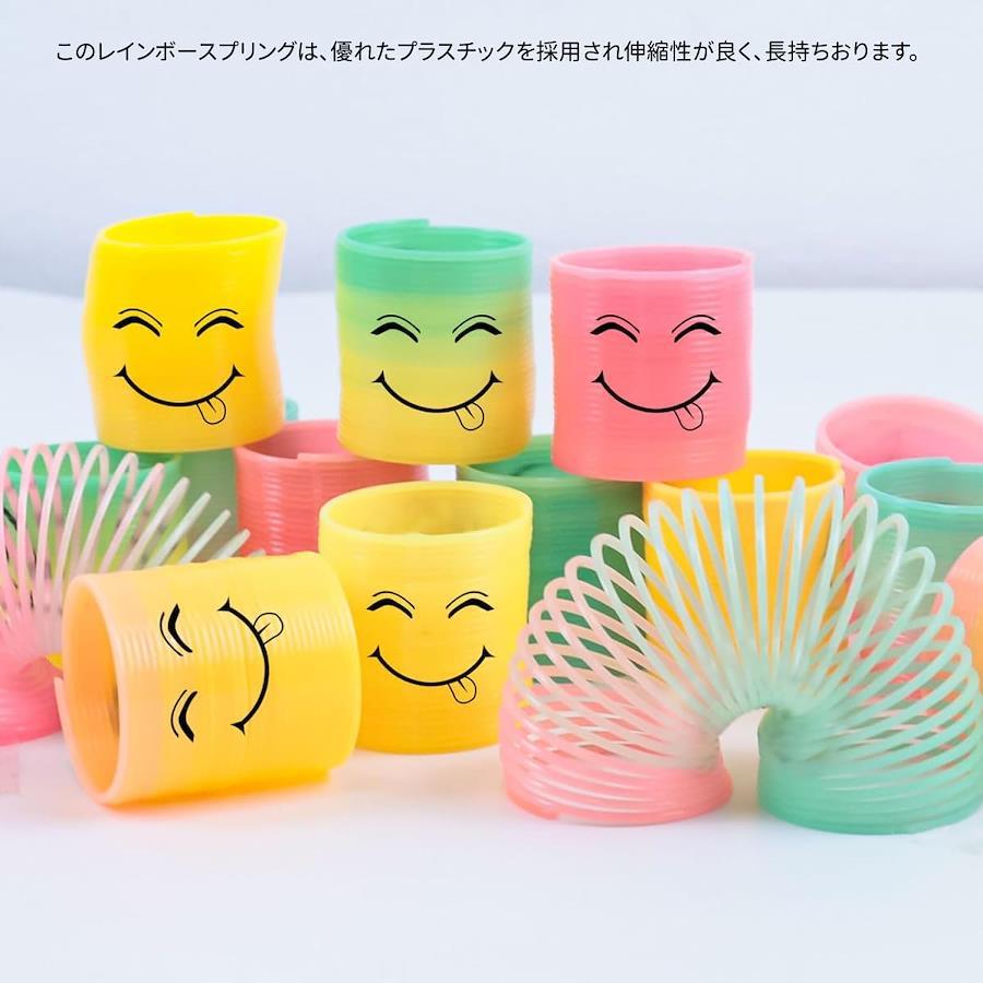 ?【セット内容】レインボースプリング36個セット。*ロットにより顔のデザイン、色は若干変化がございますので、改めてご了承くださいませ。 ?【サイズ】約:3.3*3.3cm、ミニサイズ携帯便利です。 ?【伸縮自在】このレインボースプリングは、優れたプラスチックを採用され伸縮性が良く、長持ちおります。 ?【使いやすい】マジックのアイテムとしてもご利用可能、家族と一緒に遊ぶこともできる、自分で驚かせたり、友達に見せたりすることができます。 ?【様々シーンに適用】学校のバザーのクジ、保育園、景品用、 くじ引き、 縁日、お子様ギフト、 誕生日、 記念品に最適です。