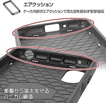 ソフトとハードの二重構造。衝撃をやわらげるTPU×鉛筆硬度3Hで傷に強いポリカーボネイト。ケース上部と下部は衝撃をやわらげるエアクッション構造。ケース内側は衝撃から端末を守るハニカム構造。液晶を下向