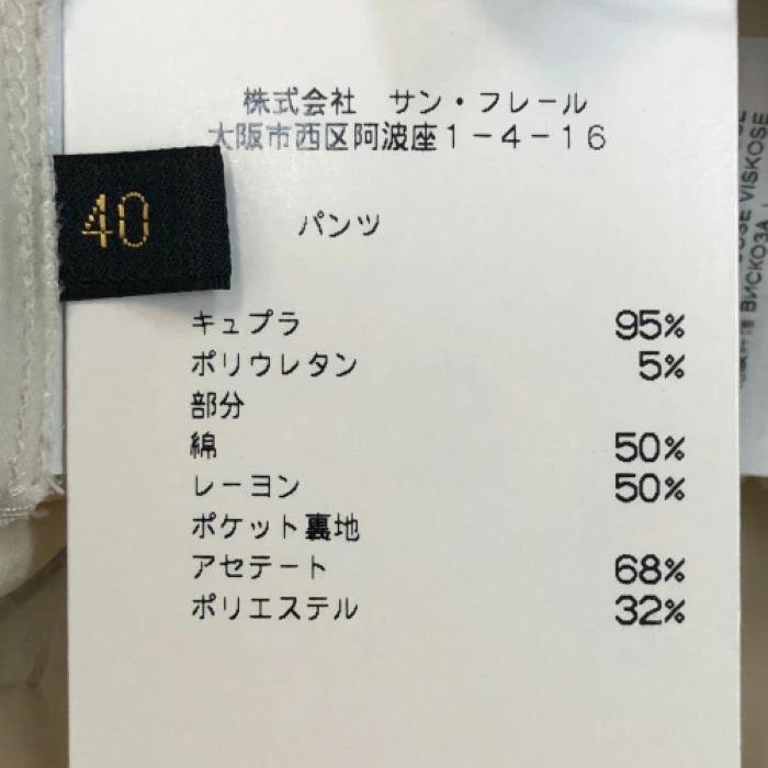 【管理番号】 014859s【ブランド名】 Les Copainsレコパン【商品名】【アイテム】 ワイドパンツ【型番】【サイズ】 40 平置採寸(ウエスト:約34.5cm総丈:約92.5cm 股上:約26.5cm 股下:約66.5cm・わたり幅:約33cm・裾幅:約30cm)【色・柄】 アイボリー【素材】 キュプラ95%ポリウレタン5% 部分:綿50%レーヨン50% ポケット裏地:アセテート68%ポリエステル32%【付属品】 タグ【外観ランク】NSランク【内観ランク】【商品補足説明】 【未使用品】光沢感があります