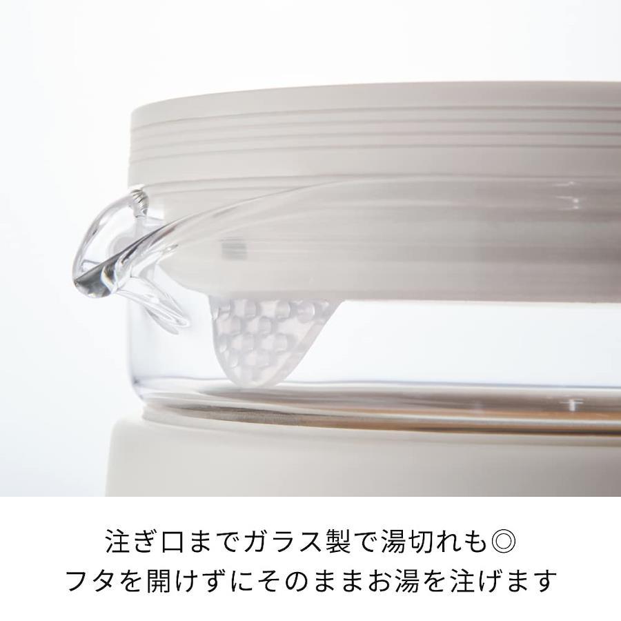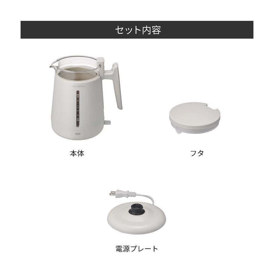 3営業日以内に発送≪新品未開封品≫:?【ガラスと樹脂のいいとこ取り】内側のポットはガラス製だから、プラスチック製のケトルなどと比べてお湯ににおいが移りにくく、お茶の本来の味わいを邪魔しません。 外側が樹脂でカバーされているから熱くなりにくく、手で持っても安心。?【操作が簡単】[電源スイッチ]を押すだけで、手軽にお湯が沸かせます。 お湯が沸いたら自動でスイッチOFF。[通電ランプ]でお知らせ。空焚き防止機能もついていて安心です。900Wと低消費電力なのもうれしい!?【容量約0.8Lの使い切りサイズ】ひと目で水量が確認できる便利な水位窓、コンパクトで扱いやすい容量です。?【お手入れラクラク】[フタ]が取り外せて間口部が広いので、お手入れラクラク。いつも清潔に保てます。?【お部屋に置きたくなるカラーとおしゃれなデザイン】お部屋になじむ北欧カラーの3色展開。すっきりしたフォルムとやさしさを感じるデザインは、暮らしをあたたかく彩ります。
