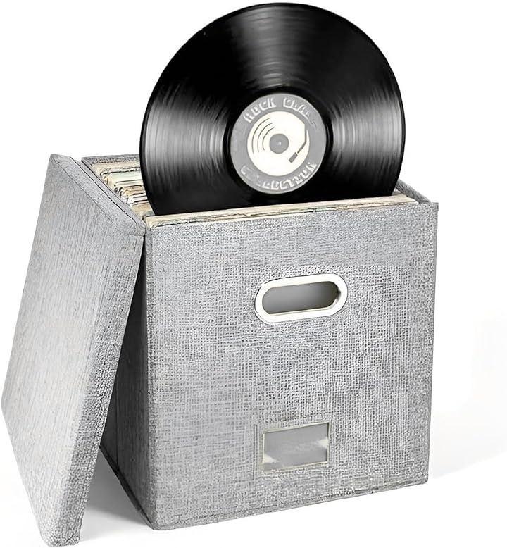 フタ付きでホコリや汚れからレコードを守りやすく、保管や出し入れの多い場面でも清潔に保ちやすい設計です。