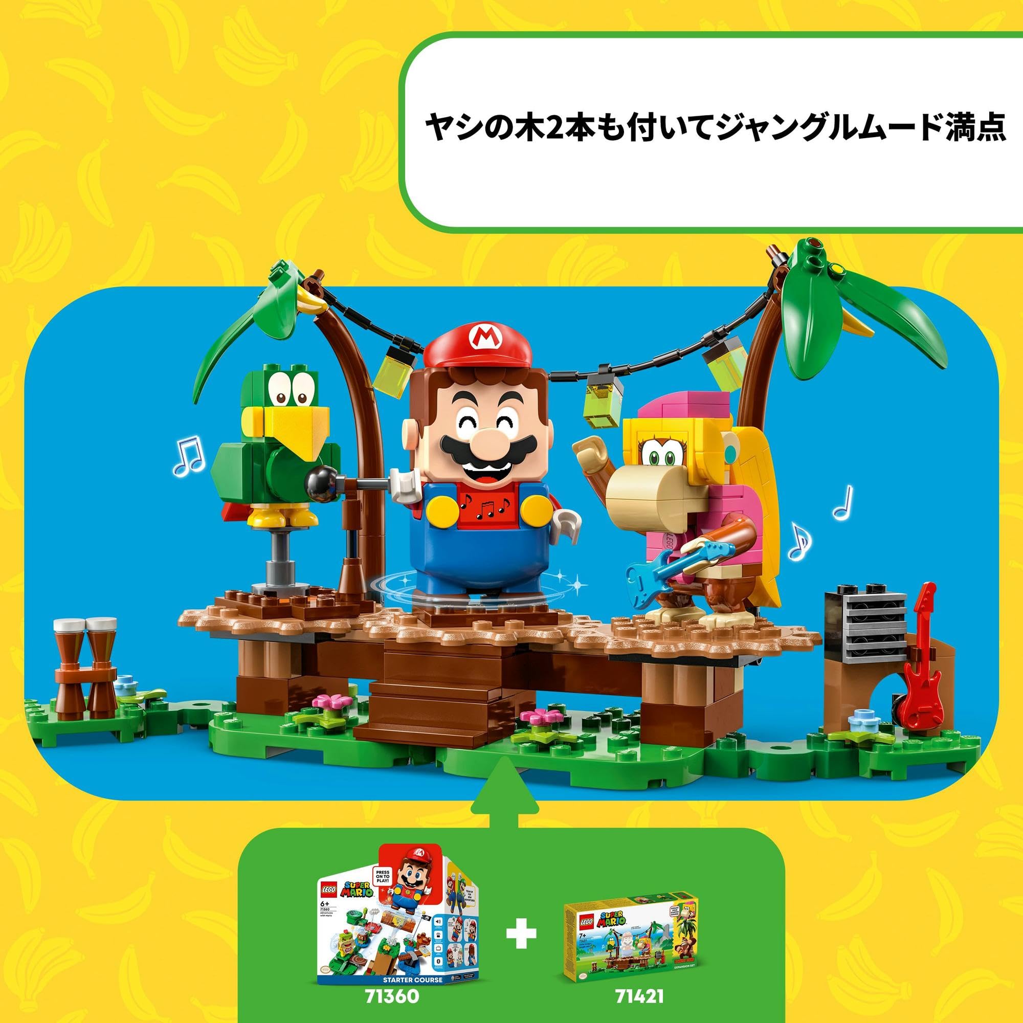 レゴ(R)スーパーマリオ 「ディクシーコング の ジャングルライブ(71421)」は、ドンキーコングのジャングルを舞台に、ノリノリのリズムに乗ったライブステージが楽しめる拡張セットです。本セットには、ディクシーコングと、オウムのスコークスのフィギュア、ジャングルを舞台にしたライブステージ、そして楽器やアンプなどが含まれています。別売のレゴ(R)マリオ、レゴ(R)ルイージ、またはレゴ(R)ピーチのフィギュアをステージの中心に立たせて回すとライブステージが回転し、様々なサウンドが鳴り始めます。本セットで遊ぶには、別売のスターターセット(71360、71387または71403)が必要です。 便利なアプリ レゴ(R)スーパーマリオ アプリには組み立て説明書や、楽しくてクリエイティブなコース作りと遊びのアイデアがいっぱい。 ステキなギフト 音楽ファンや動物好きのお子さま、ドンキーコングで遊んだ思い出を忘れられない大人の方によろこばれる贈りものです。レゴ(R)スーパーマリオ シリーズの拡張セットをスターターセットと組み合わせて、組み立てたり作りかえたりすれば、世界にたったひとつのコースでコイン集めを楽しめます。(対象年齢:7才以上)