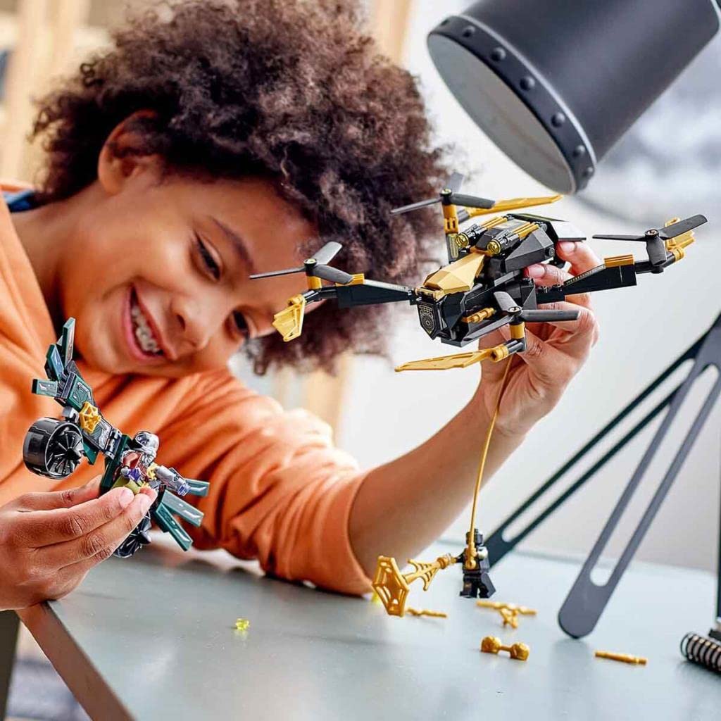 ドローンのサイズは、高さ約5cm x 幅約23cm x 奥行約25cmです。レゴマーベルシリーズの他のセットと組み合わせれば、遊びの世界が広がります。
