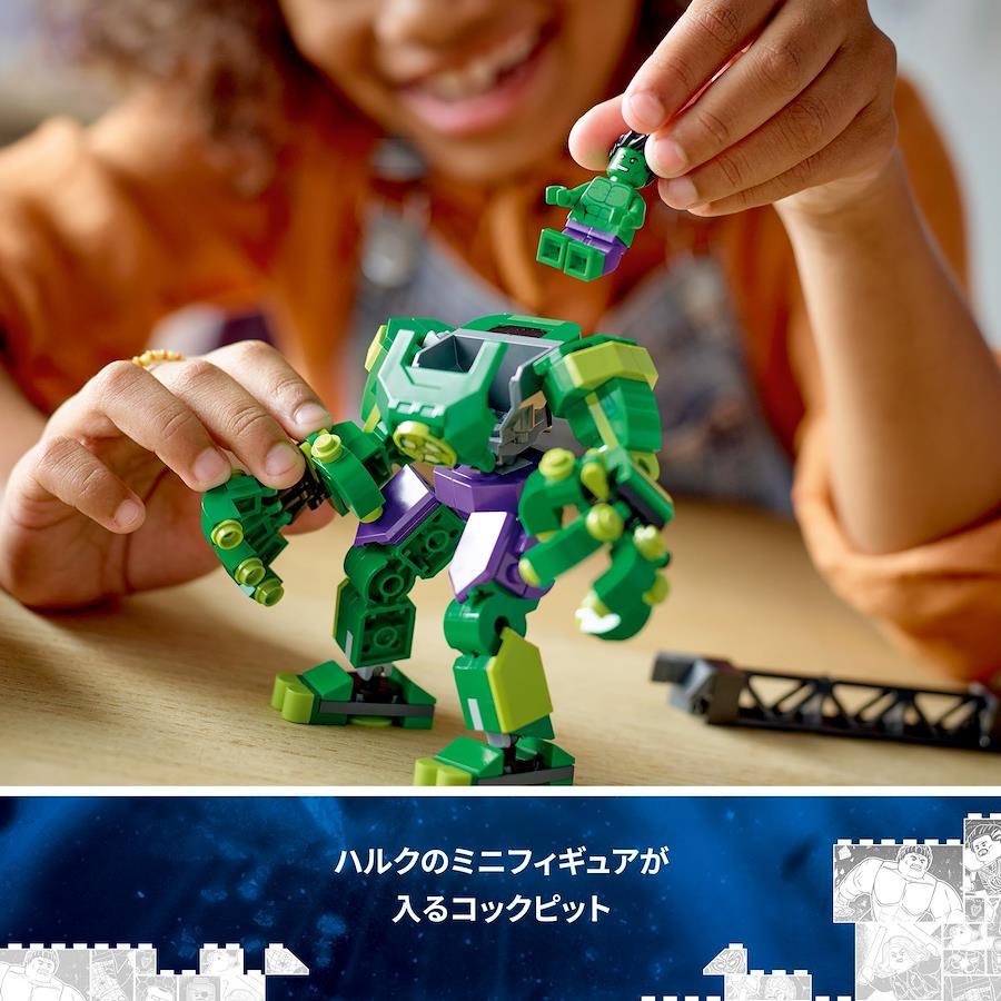 手を使う遊び - どんなポーズをとるのも自由自在のレゴマーベル ハルク・メカスーツ(76241)があれば、迫力のヒーローアクションを想像できます。スーパーヒーロー - 手足が動くメカスーツにハルクのミニフィギュアが付属しています。動かせるボディが遊びの幅を広げる - 全身の関節を動かして遊べるメカスーツのコックピットにハルクのミニフィギュアが入ります。マーベルファンへ贈りたいギフト - お誕生日やクリスマスなど、特別な日に限らず、ちょっとしたご褒美にも適しています。(対象年齢:6才以上)持ち運びに便利 - 高さ約12cmのモデルは、いつでもどこでも遊べます。デジタル版組み立て≪新品未開封品≫書 - LEGO Builderアプリがあれば、ズームや回転の機能を使ってモデルをチェックしながら組み立てを楽しめます。無限のパワーを実感 - 幅広い種類が揃ったレゴマーベルシリーズでお子さまの創造力が無限大に広がります。アメコミ スーパーヒーロー, 映画 が好きな 6歳以上 の 男の子 女の子 向けのおもちゃ
