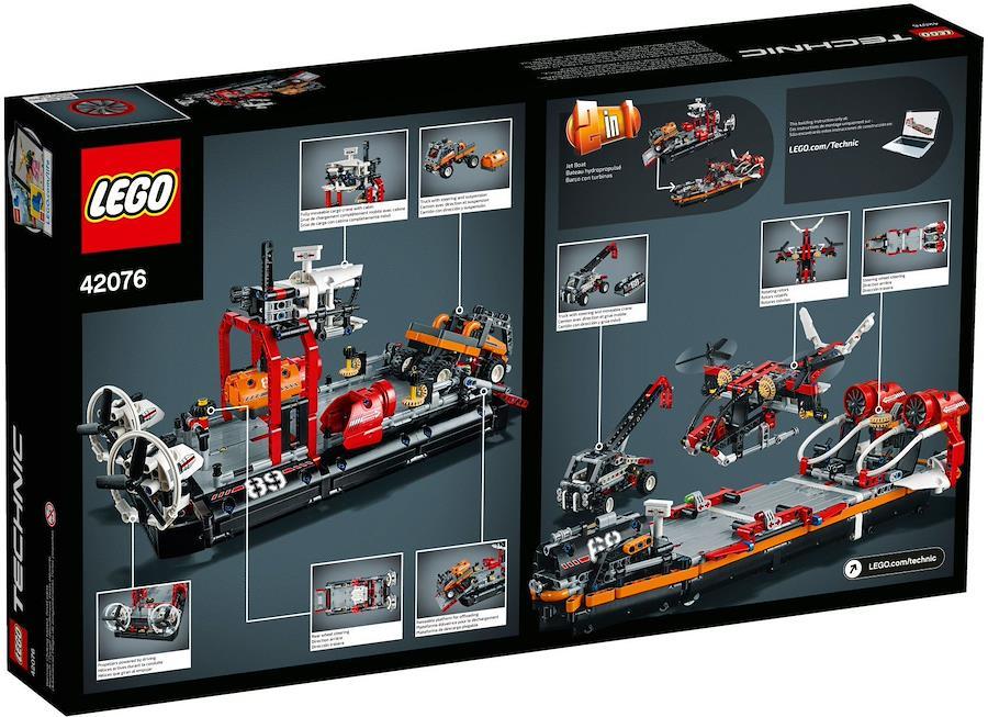 レゴ? テクニック ホバークラフトなら、どんなところにも行けるぞ。カーゴクレーンや運転席もついている、本物みたいな白黒デザインで、高さが変えられる荷台やコンテナが取り外せる頑丈な遠征トラックもあるよ。舵を切って方向転換をする度に、後部についているツインファンが回るぞ。ランプを下げてトラックをホバークラフトに載せたら、クレーンを操作してコンテナを下ろそう。ほかの組み立てにチャレンジしたければ、パワフルなジェットボートに変身させよう。