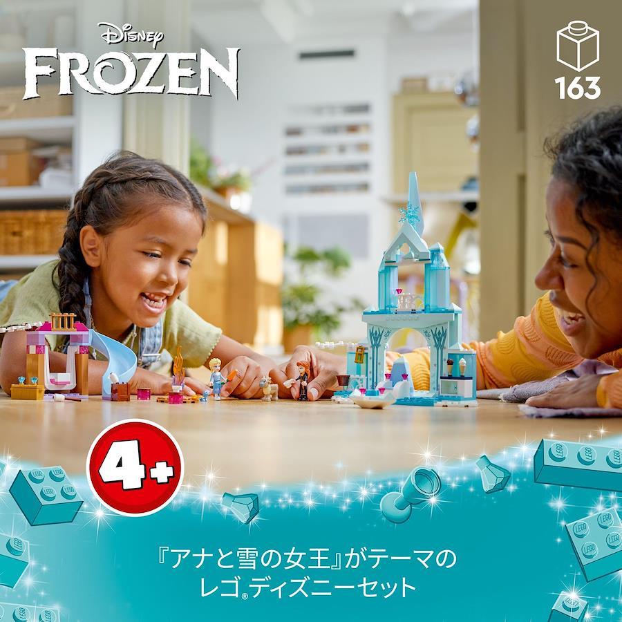 レゴ(R) ? ディズニー アナと雪の女王 エルサの氷のおしろ(43238)は、組み立てスキルを身につけながら、自由な発想で遊べる組み立てセットです。おしろの中にはキッチンや暖炉、ブランコ、すべり台などがあり、外にはたき火やカヌーといったごっこ遊びに役立つアイテムがたくさん見つかります。さらに、エルサとアナのミニドールフィギュア、火の精霊・サラマンダーと赤ちゃんトナカイのどうぶつフィギュアが付属し、楽しい遊びを繰り広げられます。(対象年齢:4才以上) レゴ 4+セットは大きめの基礎ブロックを土台にすばやくモデルを組み立てられ、遊びを通じてお子さまの自信を育みます。お子さまが創り上げた遊びの世界で楽しいひと時を分かち合うことができます。それぞれの小分け袋にキャラクター1体が入っているので、順番に組み立てながら、ごっこ遊びも楽しめます。 本セットには、読み書きをはじめたばかりのお子さまにもわかりやすいイラスト入り組み立て≪新品未開封品≫書が付属しています。さらに、組み立て手順がひと目でわかるLEGO Builderアプリにも対応し、3D表示されるモデルをズームや回転させながら組み立てを進め、作業の途中で保存することもできます。『アナと雪の女王』に憧れるお子さまの夢をカタチにする楽しいギフトです。