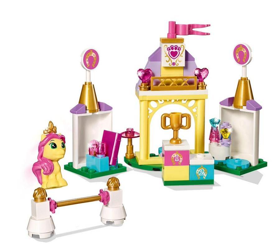 美女と野獣のベルのポニー、プティートとあそぼう! プティートと障害物競走に挑戦! 上手にできたら、表彰台でトロフィーをもらっちゃおう。おうちでは、本を読んでリラックス。そのあとはお祝いのティーパーティだよ。シャンプーしたら急いでおでかけ!