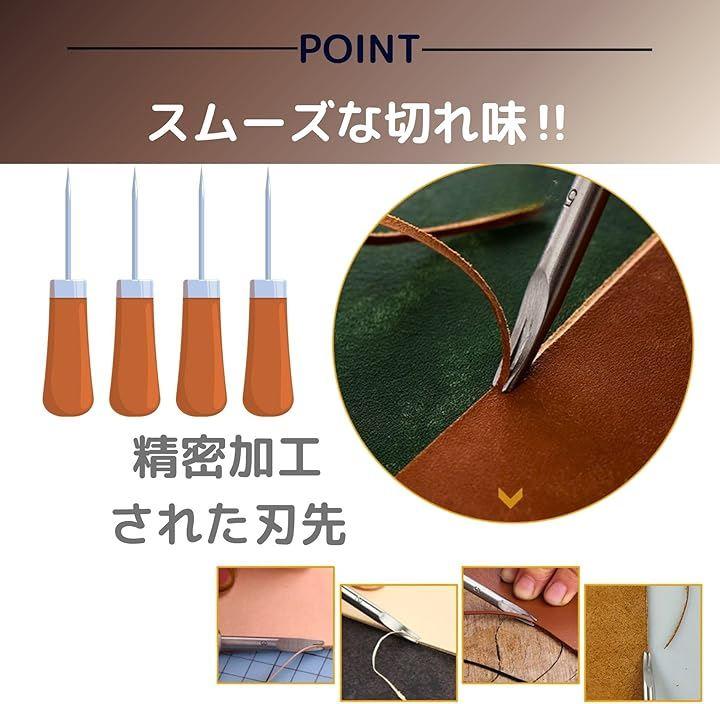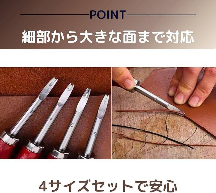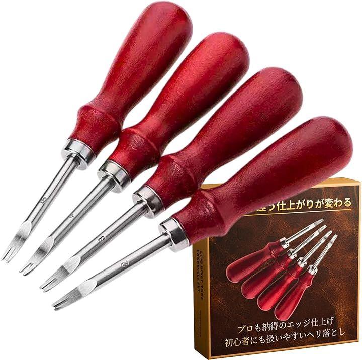 「仕上がりが変わる、ヘリ落とし4本セット」革の端を滑らかに整え、手触りと耐久性を高める必須ツール。