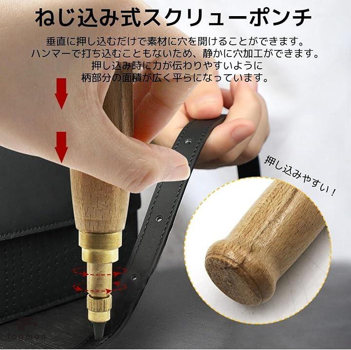 「ねじ込み式スクリューポンチ」垂直に押し込むだけで素材に穴を開けることができます。