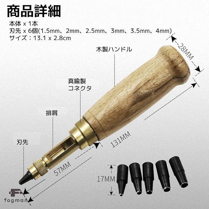 「商品詳細」本体 x 1本 刃先 x 6個(1.5mm、2mm、2.5mm、3mm、3.5mm、4mm) サイズ:13.1 x 2.8cm