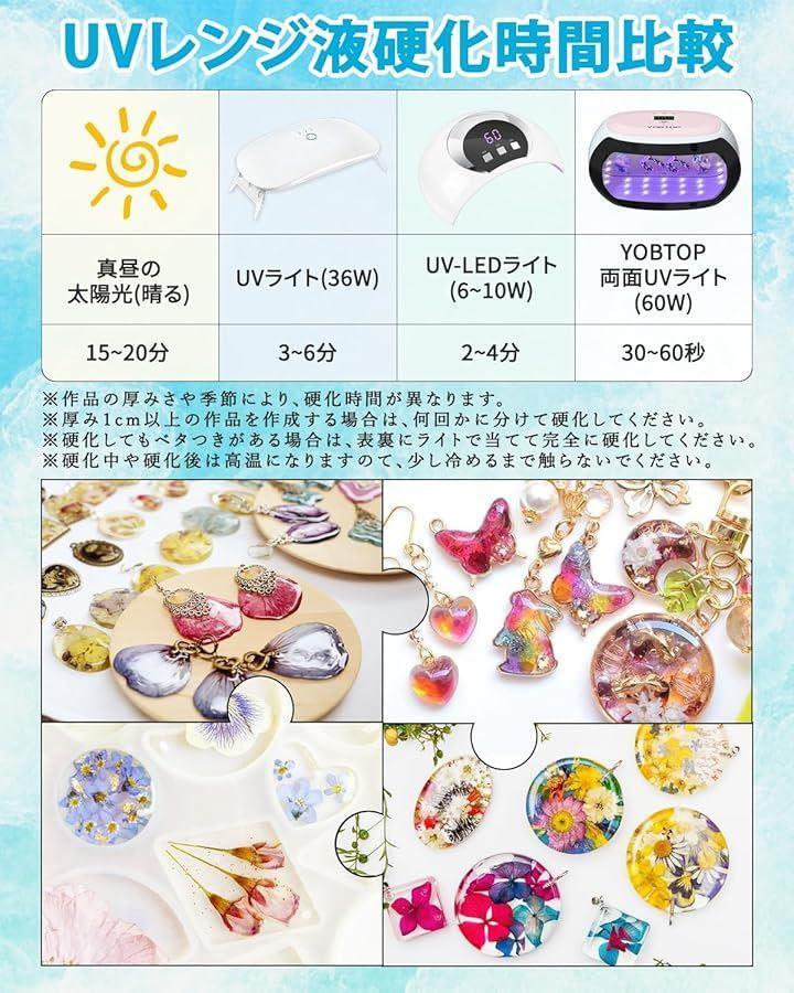 「UV-LEDランプ対応 & 急速硬化」UVレジン液はUVランプやUV-LEDランプで硬化できます。